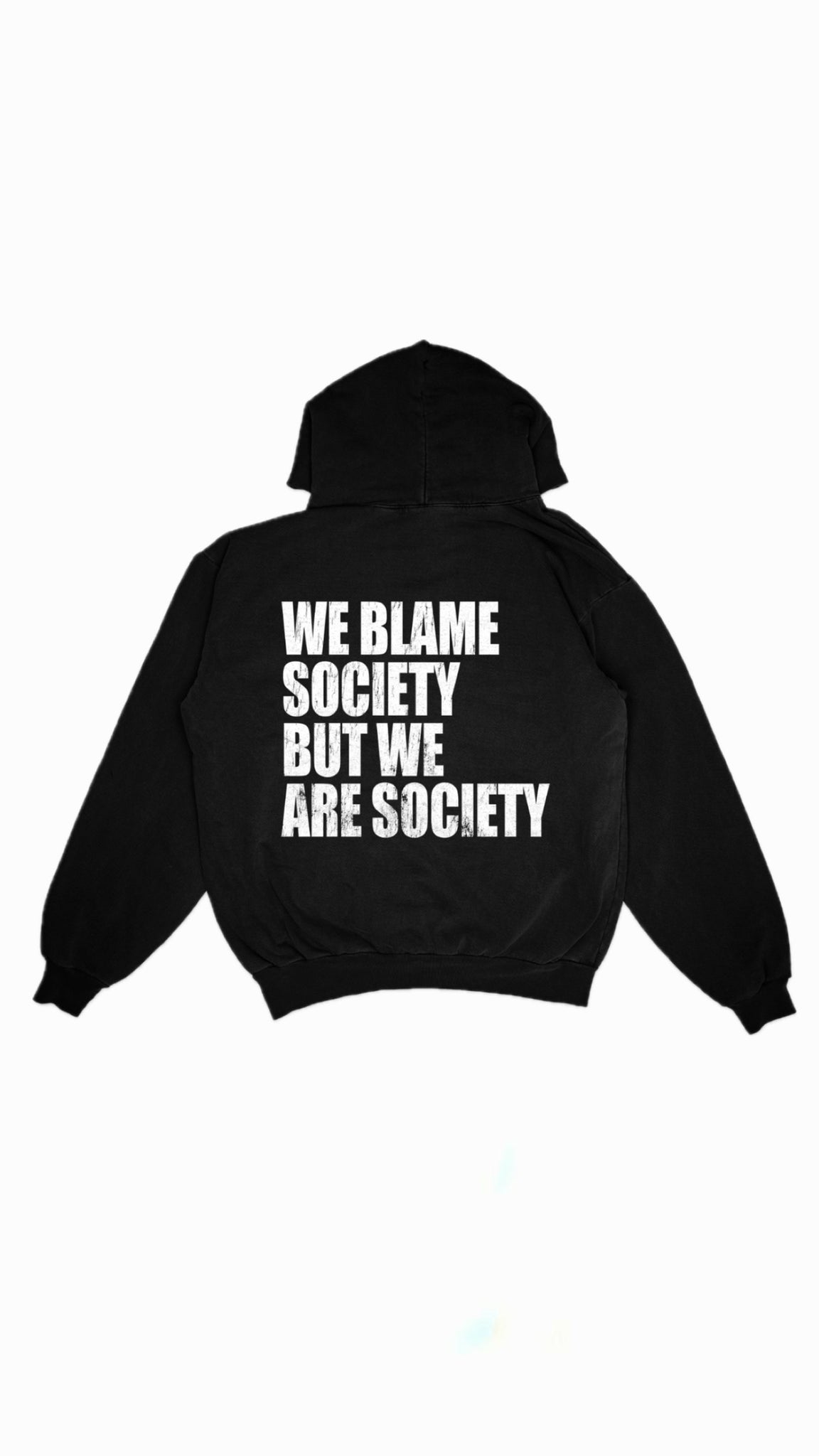 “We blame society but we ARE society” - has a different meaning for everyone. Not central to politics or religious beliefs vs the ideology that we blame the people despite being said people we blame. Support and loving one another should be our MAIN CONCERN!